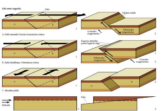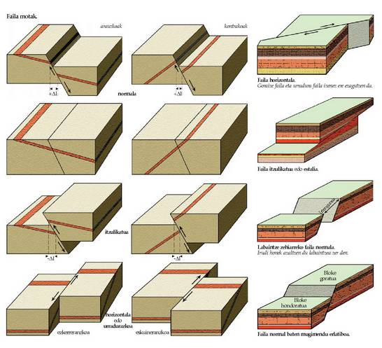 faila planoaren gainean mugitu diren lur sailak dira.