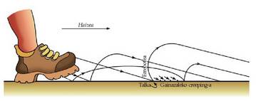 Zatikiek behin eta berriz errebotatzen dutenez gero, hondarraren gainaldeko geruza airearen noranzko berean narrastuko da.
