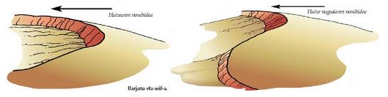 haizaldekoa. Hondar hedadura handietan barjan horiek multzoka eta