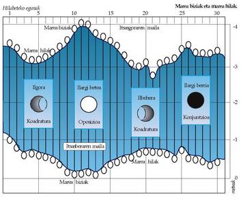arabera itsasaldien anplitudean; fenomenoaren aldizkakotasuna, dena