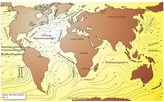 eskualde hotzen gazitasun maila.Ozeanoetako uraren mugimendua