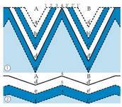 hasieran maldak atzera egiten du, jatorrizko maldaren paralelo;