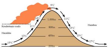 eta konbekzioek.? Igoera orografikoa haizearen bidean