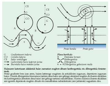 eta gune horien inguruan airea biraka mugitzen