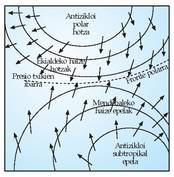 eta eremu polarra) eta mendebaleko haizeak