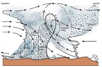 Lur azalaren berotzeak presio gutxiko gune bat sortzen du, eta aire hori mugitu egiten da gorantz doan airearen lekua hartu arte.