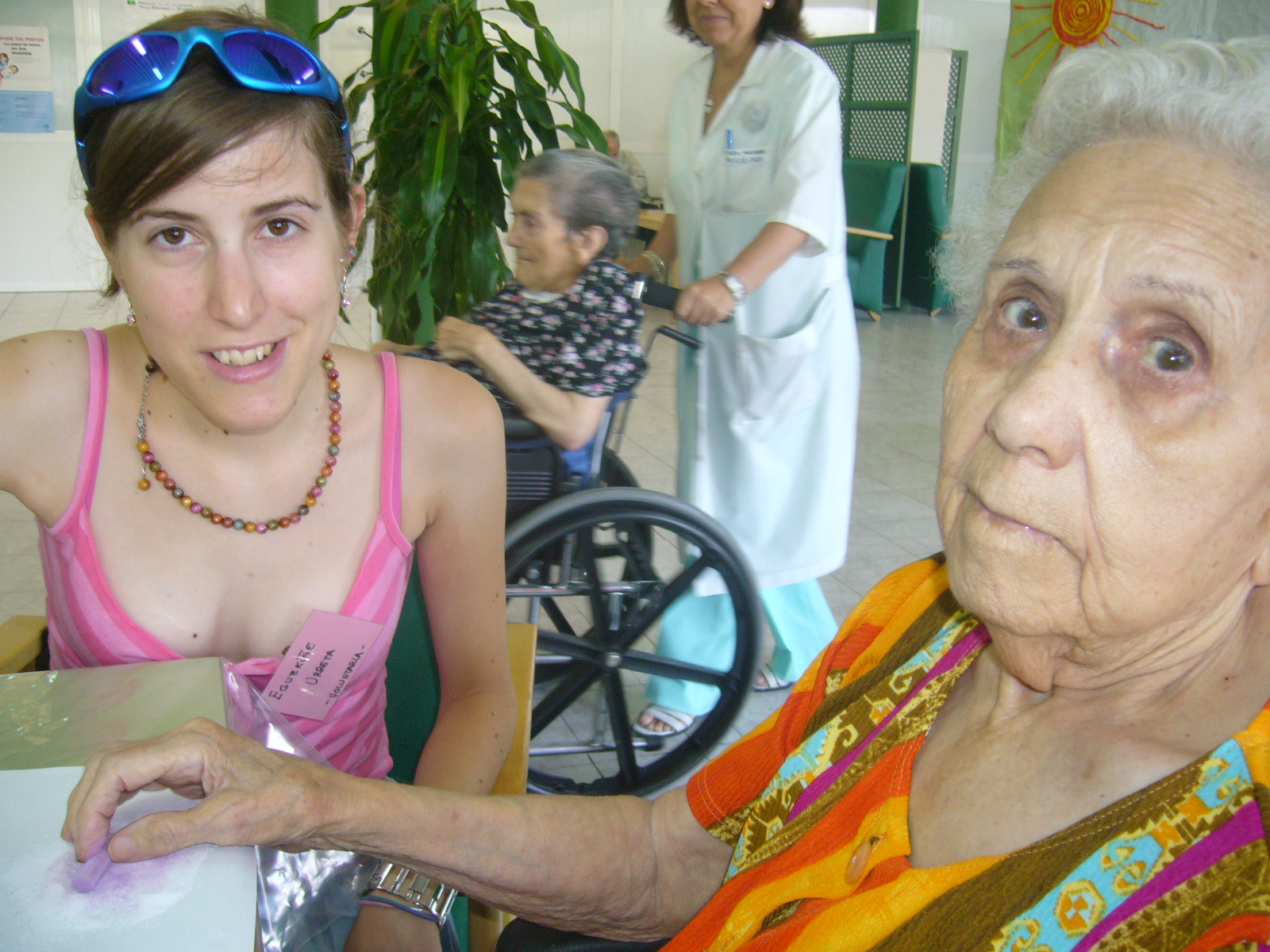 En esta foto salgo yo haciendo manualidades con un grupo de residentes.