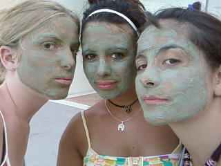 Los ángeles de Charlie, ¿o de Marte?. Somos las 3 angeles de charlie de nuevo, esta vez en un taller de cosmetica natural. todos los del campo de trabajo acabaron con la cara verde de nuestra crema, que hicimos demasiada... y que mejor que compartir!!