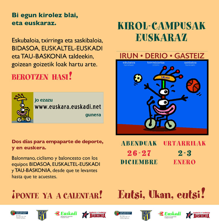 Eusko Jaurlaritzako Hizkuntza Politikarako Sailburuordetzaren ekimenez, BIDASOA, EUSKALTEL-EUSKADI eta TAU-BASKONIA taldeen baitan bizitzeko aukera duzu hor.