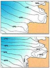 d,- Bizkaiko golkoko iparraldeko ertzean itsasoko urak ia urte guztian zehar duen tenperatura garaia. Itsaso horren berotasuna dela eta, hara iristen diren aire masak hezetasunez betetzen dira; ipar edo ipar-mendebaleko haize leunek kostaldera bultzatzen dituztenean gora egiten dute masa hezeek, banalerroaren erliebe garaia gainditzeko;gora egitean hoztu (seudoadiabasia) eta kondentsatu egiten dira eta prezipitazio handiak ekartzen dituzte.
