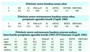 Zirkulazio motetan antizikloi motakoak usuagoak dira zikloi motakoak baino. Alboko koadroa aztertuz gero (Capell, 1983), ikus daiteke iparraldeko zirkulazio motak (nahiz eta urteko kopuru osoetan portzentaia txikia hartzen duten) udaberri hasieran izaten direla arruntagoak, apur bat urriagoak udazkenean eta oso urriak udan eta neguan.