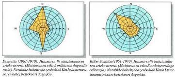 Errejistro horien arabera haize arruntenak IM norabidekoak dira (%19,79a Igeldon eta %24,2a Sondikan), nahiz eta garrantzi handia duten hegoaldeko (%19,79a eta %8,7a) haizeek eta iparraldekoek (%15,57 eta %10,6). Mendebaleko haizeak ere aipagarriak dira (%10,9 eta %8,5). Gainerako norabideetako haizeek, berriz, ez dute eraginik ia, ez baitute betetzen urteko %6-8,5tik gorako proportziorik.