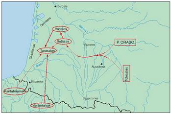 Atal honetan erromatarren konkista aurretik Euskal Herri inguruko herriak non zeuden kokatuta azaltzen da, antzinako idazleen testuak oinarri harturik eta azpimarratuz orain dela mende bat edo biko testuak eta geografiari dagokionez urruneko lurraldeetakoak erabiltzeak dakarren arriskua. Era berean, erromatarren konkistaren prozesua ere ikertzen da, konkista horrek herrien bilakaeran izan zuen eraginari dagokionez bereziki, eta baita gertaera haiek erromatar estatuaren bilakaeran izan zuen eraginari dagokionez ere. Azkenik, erromatar administrazioak ingurune honetan izan zuen antolamendua, bai barruti handien ikuspegitik (probinziak, conventusak) eta bai erromatar hiri eredu administratiboaren ikuspegitik, eta prozesu horrek izan zituen ondorioak aztertzen dira.