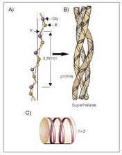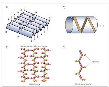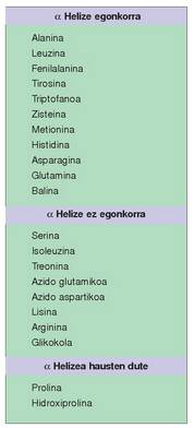 + Kolagenoak. Bigarren mailako egitura kolagenozko helizearen motakoa dute.
