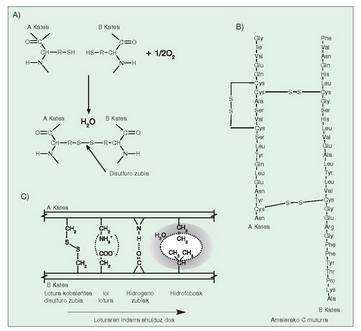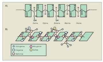 b-keratinek ez dute zisteinarik; erro txikiko aminoazido asko dituzte (alanina edo glizina).