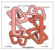 Laugarren mailako egitura du hemoglobinak; a motako bi kateez (141 aminoazido) eta b motako bi kateez (146 aminoazido) osatutako tetrameroa da. Lau hemo talde ditu, eta lotura ahulen bidez daude elkarri lotuta.