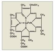 + Hemoglobina. Talde prostetikoari hemo taldea esaten zaio. Talde hori burdina duen eraztun tetrapirrolikoaz (porfirina ere deitua) osatuta dago (17. irudia).
