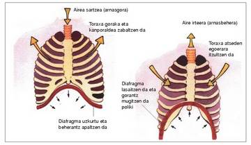 ?goiko aparatua?, airea irazi, hezetu eta berotu egiten da; gero, laringe, trakea, bronkio