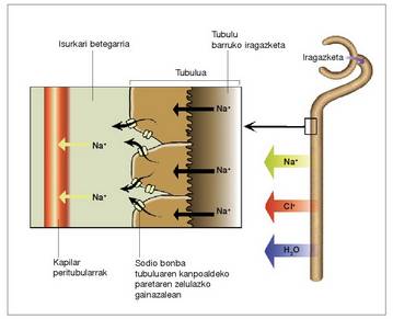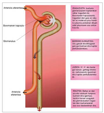 desberdinak bete ditzaketen nefronan zehar.