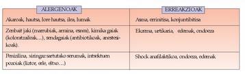 etab.), alergia erreakzioak sorrarazteko
