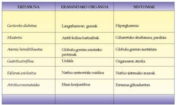 Gaztaroko diabetea, adibidez, lehen taldekoa da, eta artritis erreumatoidea, berriz, bigarrenekoa.