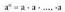 , a oinarriko eta n berretzaileko berreketa dena, eta an adierazten eta ber n irakurtzen dena, hau izango da ondorengo biderkaketa :