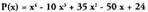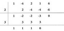 Ebazpena: Polinomioa Ruffini-ren araua erabiliz deskonposatzen da XI. atalean ikusi den moduan eta honako hau lortzen da :
