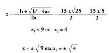 Ekuazio bikoadratikoak beti ere lau emaitza ditu eta