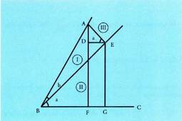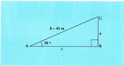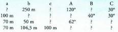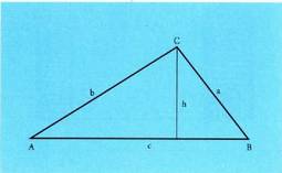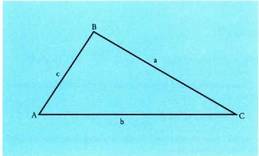 Irudiko triangeluan, adibidez, "a" aldea eta A eta C angeluak ezagutzen dira.B angelua kalkulatzen da 180°ko balioari A eta C angeluen balioa kenduta. B = 180 0 - ( A + C) eta XVII.2 atalean ikusia denez, sin B = sin (A + C).Sinuen teorema erabiliz, "b" kalkulatzen da :