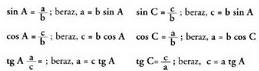 Formula hauek, aldeak ezagunak izanda triangeluen angeluak