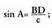 BFC triangeluan, teorema horren berorren bidez BF kalkulatzen da :