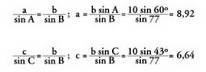 C = 120° - 770 = 43°Angeluen balioak jakinda, aldeak sinuen teorema erabiliz kalkulatzen