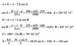 direlarik. a = 15 cm; b = 20 cm; eta c = 25 cm.a) Heronen formula erabiltzen bada, ebazpena oso erraza da :