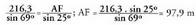 FD = 216,3 mAFD triangeluan, sinuen teoremaren bidez AF kalkulatzen da :