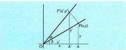 norabidea.Ekuazioak ardatz cartesiarretan.Proiekzioa egin nahi den zuzena, jatorri puntutik igarotzen dela
