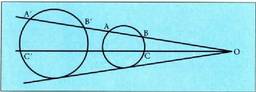 dela. c zirkunferentziako A eta B puntuak hartzen dira (bi edozein), baina O-rekin lerrokatuta daudenak. Beren eraldatuak