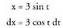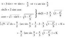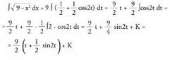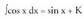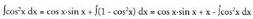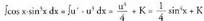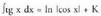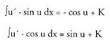 kalkulatzeko cos x = sin(90º - x) egiten da, eta era horretara aurreko kasu berean gaude.Ebazteko, 90° - x = y aldagai aldaketa egiten da; orduan dx = - dy da eta hau lortzen da :