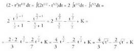 Konstante eta funtzio baten arteko biderkaduraren integrala, konstantearen eta funtzioaren integralaren arteko biderkadura (la.Frogapena :F(x) funtzioa f(x) funtzioaren jatorrizko bat bada,Baina (k.F(x))' = k.F'(x) = k.f(x) da, beraz, k.F(x) funtzioa k-f(x)en jatorrizko bat da. Beraz,Adibidea. (Tasun hauen aplikazioak)1. Kalkula ezazuEbazpidea :Lehenengo tasuna dela medio,Bigarren tasuna dela medio,etaBainaeta fx dx, berehalako integralen zerrendako bigarren kasukoak dira.Lehenengoan ni = 2, eta bigarrenean m = 1 da.