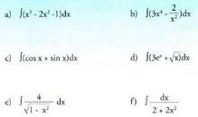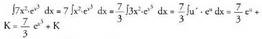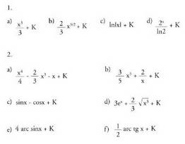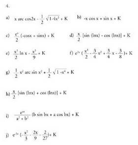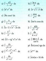 1. Kalkula ezazu J7x2 ?ex3 dxEbazpidea:Hasteko, 7 konstantea integraletik ateratzen da.aldaketa eginez,lortzen da.3-z biderkatu eta zatitzen da :2. Bila ezazuEbazpidea:u = cos x aldaketa egiten da, orduan u' _ - sin x da.-1-ez biderkatu eta zatitzen da.3. Kalkula ezazuEbazpidea :daAurrekoetan egindako azterketen antzeko bat eginez, hau ateratzen da :- cos x funtzioaren deribatua sin x da. Katearen erregela aplikatuz, cos u funtzioaren deribatuada. Era berean, sin u funtzioaren deribatuada.Horrela lortzen dira :