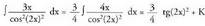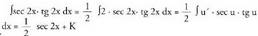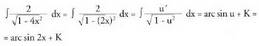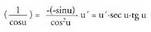 1. Kalkula ezazuEbazpidea :inserted textetaLehenengoakadierazten du, bigarrenak berrizadierazten du.aldaketa egiten da ; orduanda.3-z biderkatu eta zatitzen da.f) Beste kasuak bezala, honako hauek ere erraz froga daitezke :? Adibideak1. Kalkula ezazuEbazpidea :3 konstantea integraletik kanpora ateratzen da.aldaketa egiten da ; orduan u' = 4x da.4-z biderkatu eta zatitzen da.2. Kalkula ezazuEbazpidea:3 konstantea integraletik ateratzen da.aldaketa egiten da ; orduanda.g) u, x-en funtzio bat bada, katearen erregela erabiliz, sec u funtzioa deribatuz, u' ?sec u ? tg u ateratzen da.Hain zuzen,Beraz:? Adibideak1. Kalkula ezazuEbazpidea:u = 2x aldaketa egiten bada, orduan u' = 2 da.2-z biderkatu eta zatitzen da2. Kalkula ezazuEbazpidea:dela kontuan izanik, integral hau aurreko integralera bihurtzen da.Beraz:inserted text? Adibideak1. Kalkula ezazuEbazpidea :eran idazten da. Horrela argi gelditzen da egin behar den aldaketa u = 2x dela. Orduan, u' = 2 da.2. Kalkula ezazuEbazpidea:da. u = 2x aldaketa egiten da ; orduan u' = 2 da.2-z biderkatu eta zatitzen da.3. Kalkula ezazuEbazpidea:Hasteko, integral honek, azken bi kasuen antzik ez duela dirudi, baina lehenengo kasu bezala ebatzi daiteke.Berazaldaketa egiten da. Orduanda.-z biderkatu eta zatitzen da.Integratzeko teknika hau maiz erabiltzen da era honetako integralak kalkulatzerakoan.