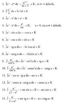 Edozein funtzioren integrala ebatzita dago integratu behar den funtzioaren jatorrizko bat ezagutzen denean. Jatorrizko bat bilatuz gero, jatorrizko horri konstante bat gehituz ateratzen da integral orokorra.Integrazioa deribazioaren alderantzizko eragiketa denez, oinarrizko funtzioen funtzio deribatuen integralak berehala bilatzen dira.