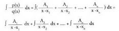 Horrela,; zatiki sinpleak dira.erako integralen aterketa egiterakoan, p(x) zenbakitq (x) zailearen maila q(x) izendatzailearen maila baino txikiagoa dela hartuko da abiaburutzat. Zenbakitzailearen maila izendatzailearen mailaren berdina edo handiagoa balitz, p(x) eta q(x)-en arteko zatiketa egin beharko litzateke, eta z(x) zatidura eta h(x) hondarra aterakointegralaintegralean bihurtzen da.polinomio baten integrala denez, berehalakoa da, eta