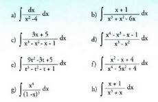 erako integralak ebazteko honela egiten da : 1. q(x) polinomioaren faktorketa egiten da, horretarako q(x) = 0 ekuazioaren erro edo soluzioak bilatzen dira.2. Adibidetan ikusiko den eran,zatikia, zatiki sinpleenbatura bezala deskonposatzen da.3. Ateratzen diren batugaien integralak kalkulatzen dira.Baina q(x) = 0 egiterakoan hiru erako emaitzak atera daitezke :- erro edo soluzio bakunak, sinpleak (soluziorik ez da errepikatzen).- erro edo soluzio anizkoitzak (gutxienez soluzio bat errepikatzen da).- erro edo soluzio irudikariak (zenbaki konplexuak).Kasu bakoitza bere aldetik ikasi behar da.A) Erro erreal sinpleak ateratzen direnean.q(x)-en erro sinpleakinserted textzehaztu behar diren konstanteak dira. Ikusi daitekeenez, ateratzen diren integralak berehalakoak dira.? Adibidea1. Kalkula ezazuEbazpidea:izendatzailearen erroak hauek dira :Beraz, bi erro sinple desberdin ditu : 1 eta - 1.zatiki sinpletan deskonposatzen da :Izendatzaileak berdinak direnez, zenbakitzaileek ere berdinak izan behar dute :A eta B mugatzeko x-ri balioak emango dizkiogu :x-ri nahi den balio eman diezaiokegu, baina kalkuluak errazteko, batugaietariko bat anulatzen duen balioa eman zaio. Prozedura hau oso hedatua dago.Horrela bada:Beraz :B) Erro erreal anizkoitzak ateratzen direnean.a erroa n aldiz errepikatzen bada,zatikiaren deskonposatzea zatiki sinpletan hau da :orain ere, zehaztu behar diren konstanteak dira.