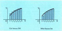 [a,b] -ren partiketa segida bat bada,direlarik, hau betetzen dute goi eta behe-baturek :Lehenengo segida gorakorra denez, eta edozein SM-k goi-bornatua dagoenez, eta bigarren segida beherakorra denez eta Sm-k bornatua, orduan,tarte guztien luzerak zerorantz jotzen badu, beraien arteko diferentziak ere zerorantz jotzen duela egiaztatzen da ; hau da :Definizioz, bi segida hauen limite komuna, f funtzioak eta a eta b puntuak mugatutako trapezio lerro-nahasiaren area da.Laukizuzen inskribatu eta zirkunskribamen arteko aldeaZoritxarrez, tarte bateko partiketa denak ez dira beti batzuk besteen barnekoak, beraz ezin da beraien artean,