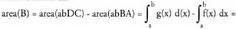 Area hori, y = f(x) funtzioaren grafikoaren, eta a eta b balioen araberakoa izango da. f(x), a eta b balioen mende dagoen area baten balioa horrela idazten da : A(f,a,b). Area horren balioa kalkulatzeko,elkarren ondoan jarritako laukizuzenen bidez hurbilduko da barrutia.