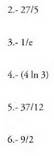 2.funtzioak emanik,a) Bila itzazu bi grafikoen arteko ebaki puntuak.b) Kalkula ezazu grafikoek definitzen duten barrutiaren area3.funtzioa emanda,a) Bila ezazu bere asintota, eta egin kurbaren zirriborroab) Bila ezazu f-ren grafikoak, OX ardatzak eta x = 1 zuzenak definitzen duten barrutiaren area.4.funtzioa emanda,a) Bila itzazu bere asintotak, eta egin kurbaren zirriborroab) Bila ezazu f-ren grafikoak, bere asintota horizontalak eta x = 2 zuzenak definitzen duten barrutiaren area.5.etafuntzioak emanik, bila itzazu f eta g funtzioen grafikoen arteko ebaki puntuak, eta ebaki puntu horien arteko barrutien area.6. Bila ezazuparabolak eta x + y + 1 = 0 zuzenak mugatzen duten barrutiaren area.7. Bila ezazuparabolak, x = 3 abzisa puntuan dagokion zuzen ukitzaileak eta koordenatu ardatzek mugatzen duten barrutiaren area.8. Bila ezazuhiperbolak eta x = 1 eta x = 3 abzisapuntuak lotzen dituen kordak mugatzen duten barrutiarenarea.9. Bila ezazu
