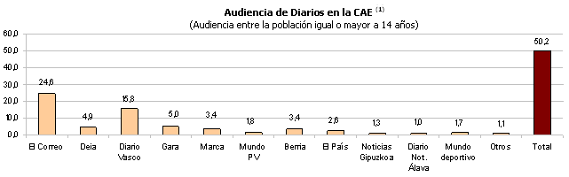 (1) Información correspondiente al año 2007. Fuente: CIES. “Estudio de Audiencia de Medios en Euskadi acumulado del 2007”.