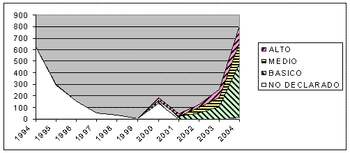 Lo primero que llama la atención en este cuadro es que prácticamente la mitad de los ficheros no tienen declarado el nivel de seguridad aplicable. Esto se interpreta mejor examinando el siguiente cuadro: