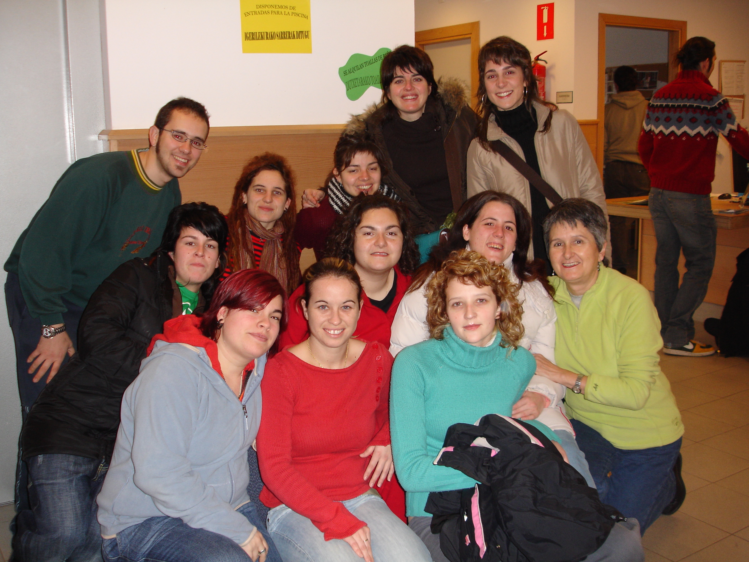 Quince chicos y chicas, de los cuales 4 hemos formado el grupo de España, Elisa, de la Delegación de Juventud del Ayuntamiento de Gines, Nayade, de Cruz Roja Juventud Asturias, Elena del INJUVE y Nerea, de la Federación Bosko Taldea de Euskadi.