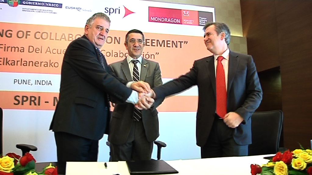 El Gobierno Vasco, a través de la SPRI, y la Corporación Modragón han suscrito, esta mañana, un acuerdo de colaboración que permitirá que empresas ajenas al grupo empresarial se instalen en el parque empresarial que el grupo tiene en Pune (India), en concreto, en 40.000 de los 166.000 metros cuadrados que tiene este parque. La firma de este acuerdo se ha producido en Pune (India) y ha estado presidida por el Lehendakari, Patxi López, quien ha destacado la importancia de acuerdos de este tipo -similar al alcanzado el año pasado en China con el mismo grupo empresarial- ya que "va a permitir a muchas de nuestras empresas, que de otra forma tendrían dificultades para entrar en el mercado indio, lo hagan y con fuerza, de la mano de uno de nuestros mejores embajadores en el extranjero". El consejero de Industria, Bernabé Unda, y el presidente de Corporación Mondragón, José Mari Aldekoa, han destacado la importancia que, en la coyuntura de crisis global actual, tiene para las empresas la multilocalización. "Tenemos que cooperar incluso con nuestros competidores", ha señalado Aldekoa.